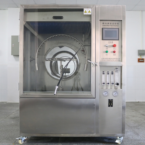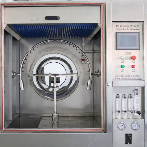 橫向淋雨試驗箱滿足IPX1~IPX6組合淋雨試驗,可逼真模擬電子產品及其元器件在運輸、貯存或使用期間可能受到的淋水和噴淋等環境以檢測其外殼防水性能。