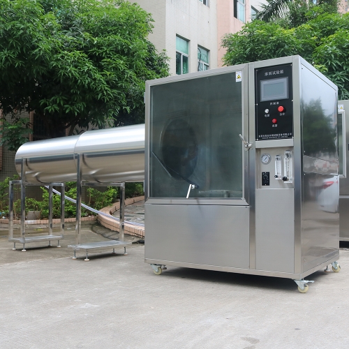橫向淋雨試驗機滿足IPX3~IPX6組合淋雨試驗,逼真模擬電子產品及其它產品外殼和遮蓋物等密封件在運輸、貯存或使用期間可能受到的淋水和噴淋等環境以檢測其防水性能。
