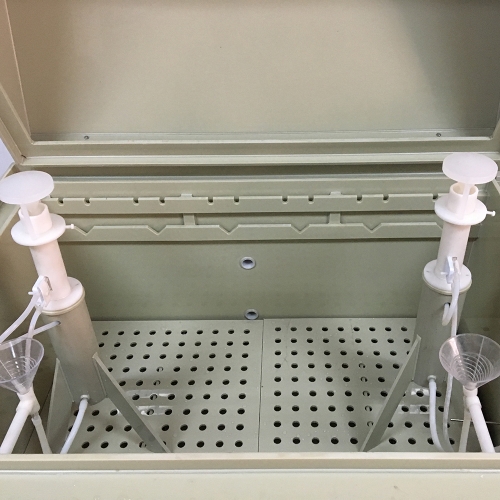 伯努利原理吸取配好后的鹽水而后霧化,霧化程度均勻,絕無阻塞結晶之現象,可確保測試連續進行。壓縮空氣經由它所通往噴嘴途中的氣泡塔而被濕潤,噴嘴將腐蝕溶液和空氣霧化成腐蝕性氣霧,與此同時鹽霧箱內加熱器保持箱內合適溫度。