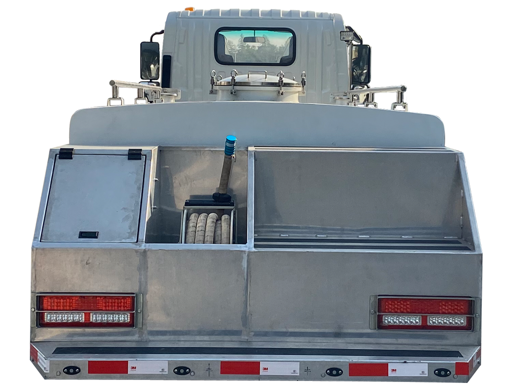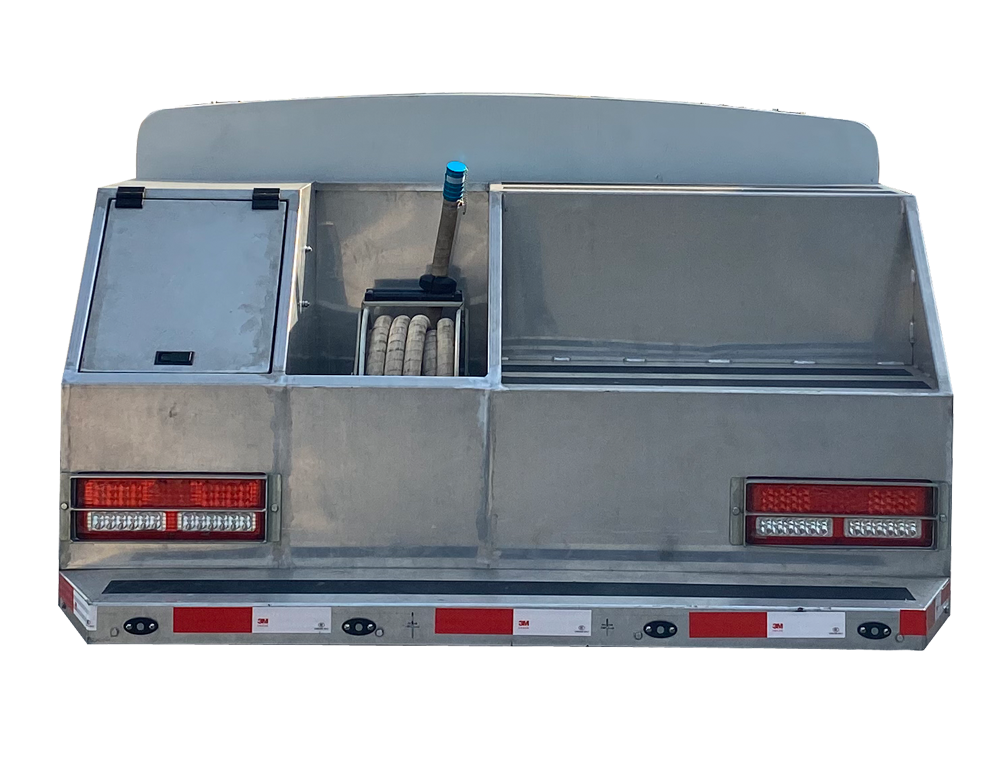尾部框架為框架式結構,左側為水管箱和過濾器箱,右側為梯凳,外表面全部防銹蝕、防滑型花紋鋁板。